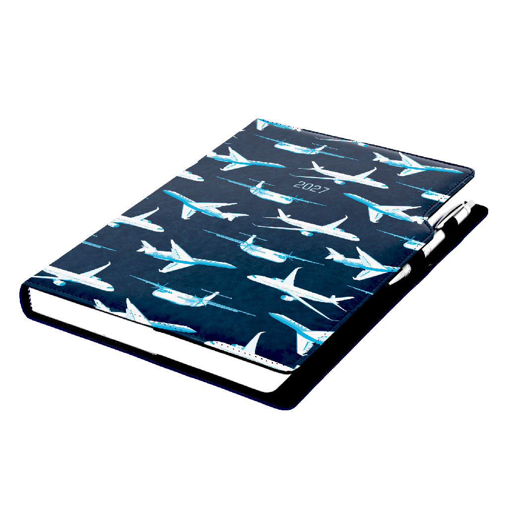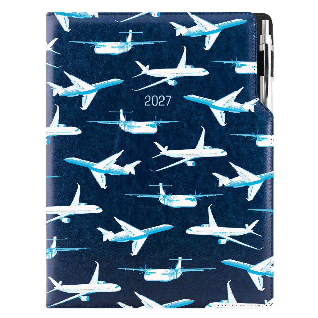 Diár DESIGN denný A4 2027 český - modrá - lietadlá