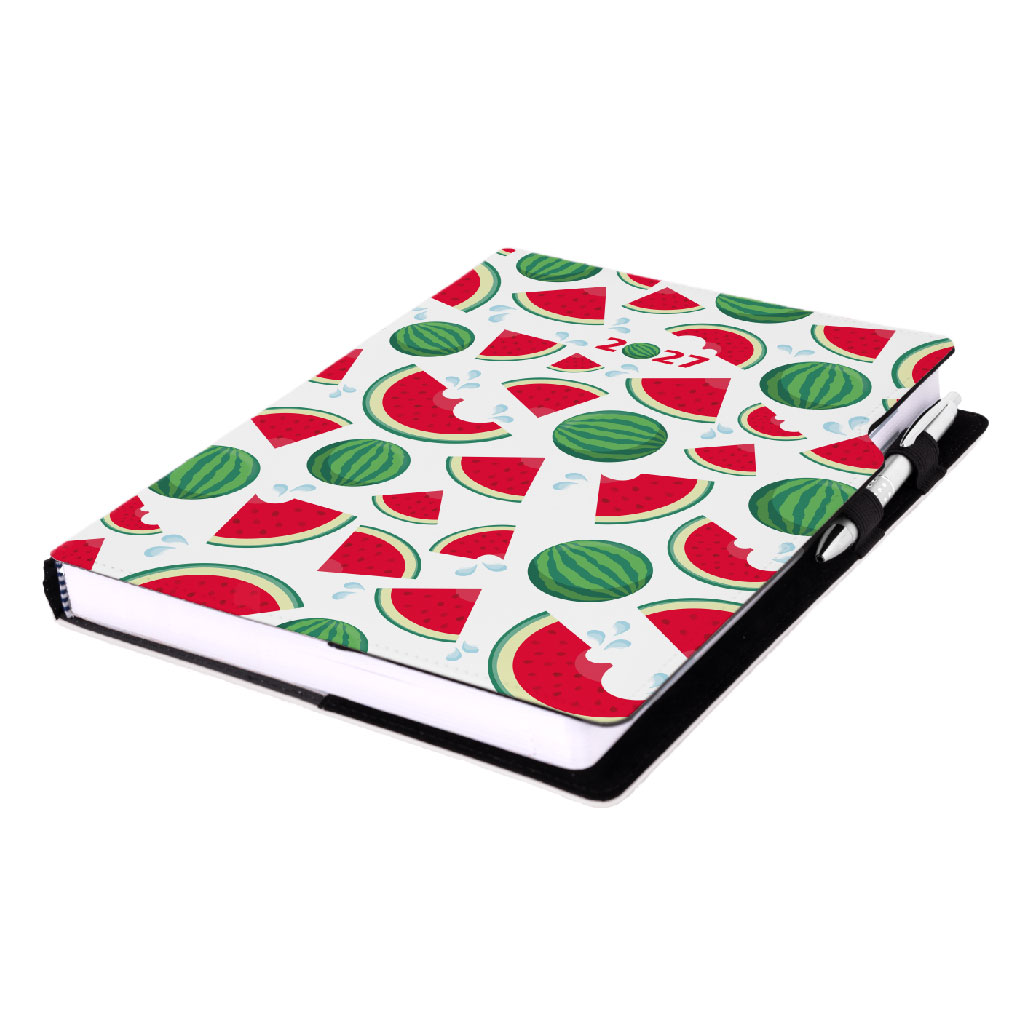 Diár obsahuje: okrúhle odtrhávcie rožky, bielu záložku a pero