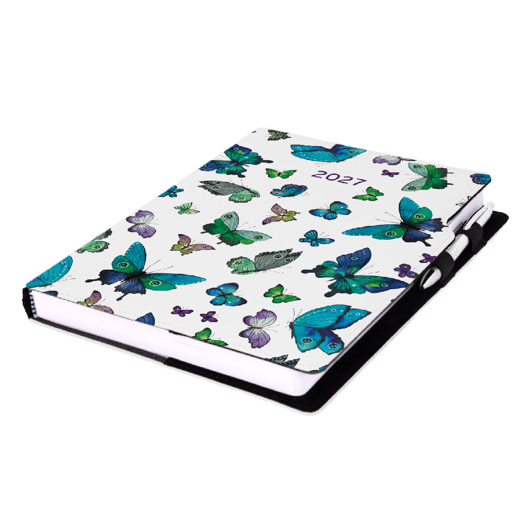 Diár DESIGN denný A4 2027 - Motýle modré