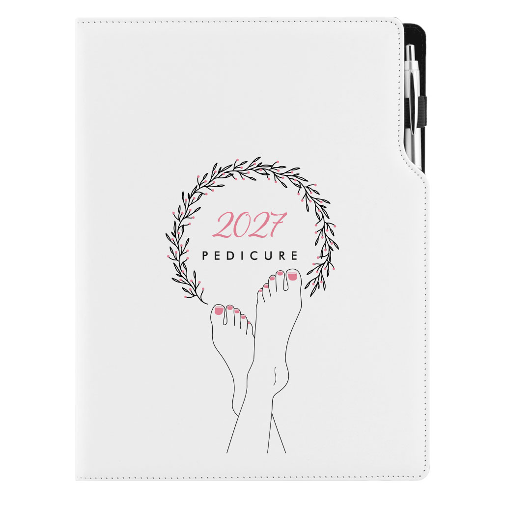 Diár obsahuje: okrúhle odtrhávcie rožky, bielu záložku a pero