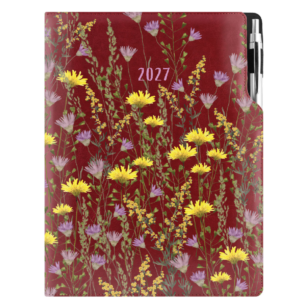 Diár DESIGN denný A4 2027 poľský - borodová - Lúka