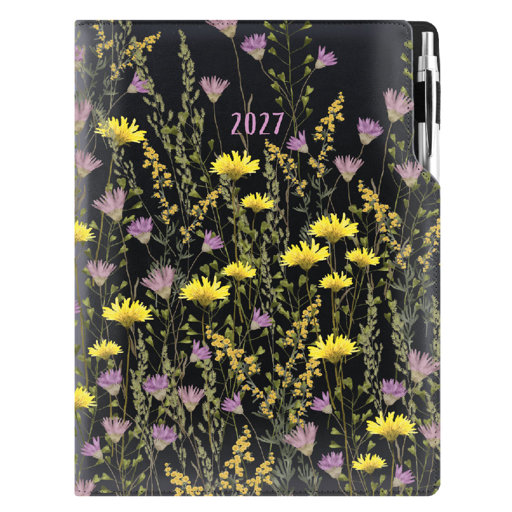 Diár DESIGN denný A4 2027 poľský - čierna - lúka