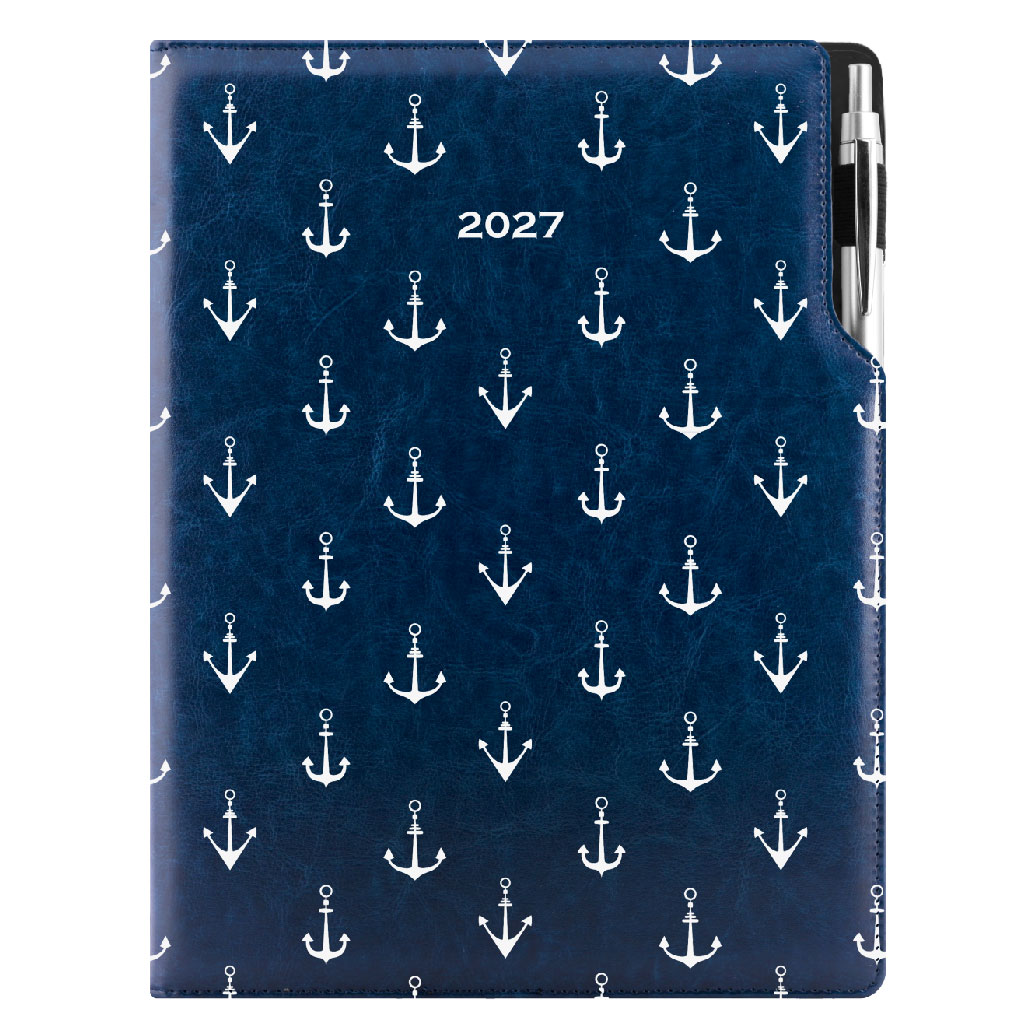 Diár DESIGN denný A4 2027 poľský - modrý - námorník - kotvy