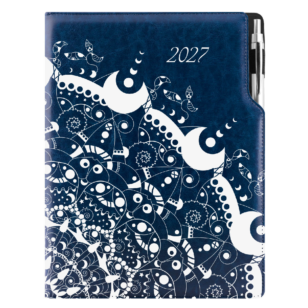 Diár DESIGN denný A4 2027 poľský - modrý - ornament