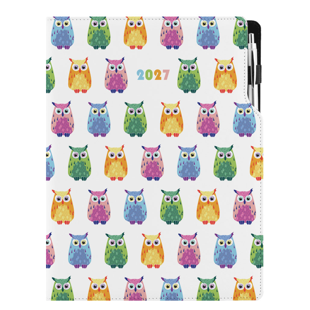 Diár obsahuje: okrúhle odtrhávcie rožky, bielu záložku a pero
