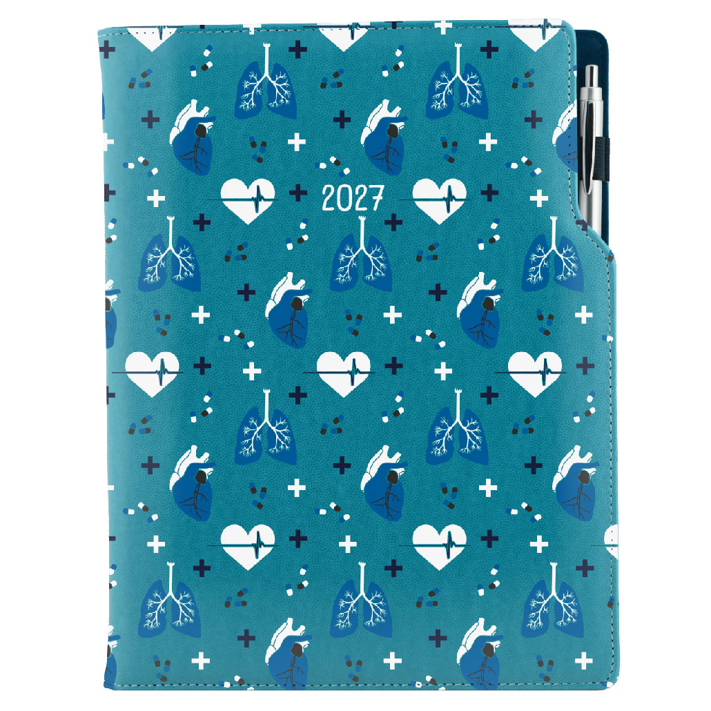 Diár DESIGN denný A4 2027 polský - tyrkysová- Doktor - srdce