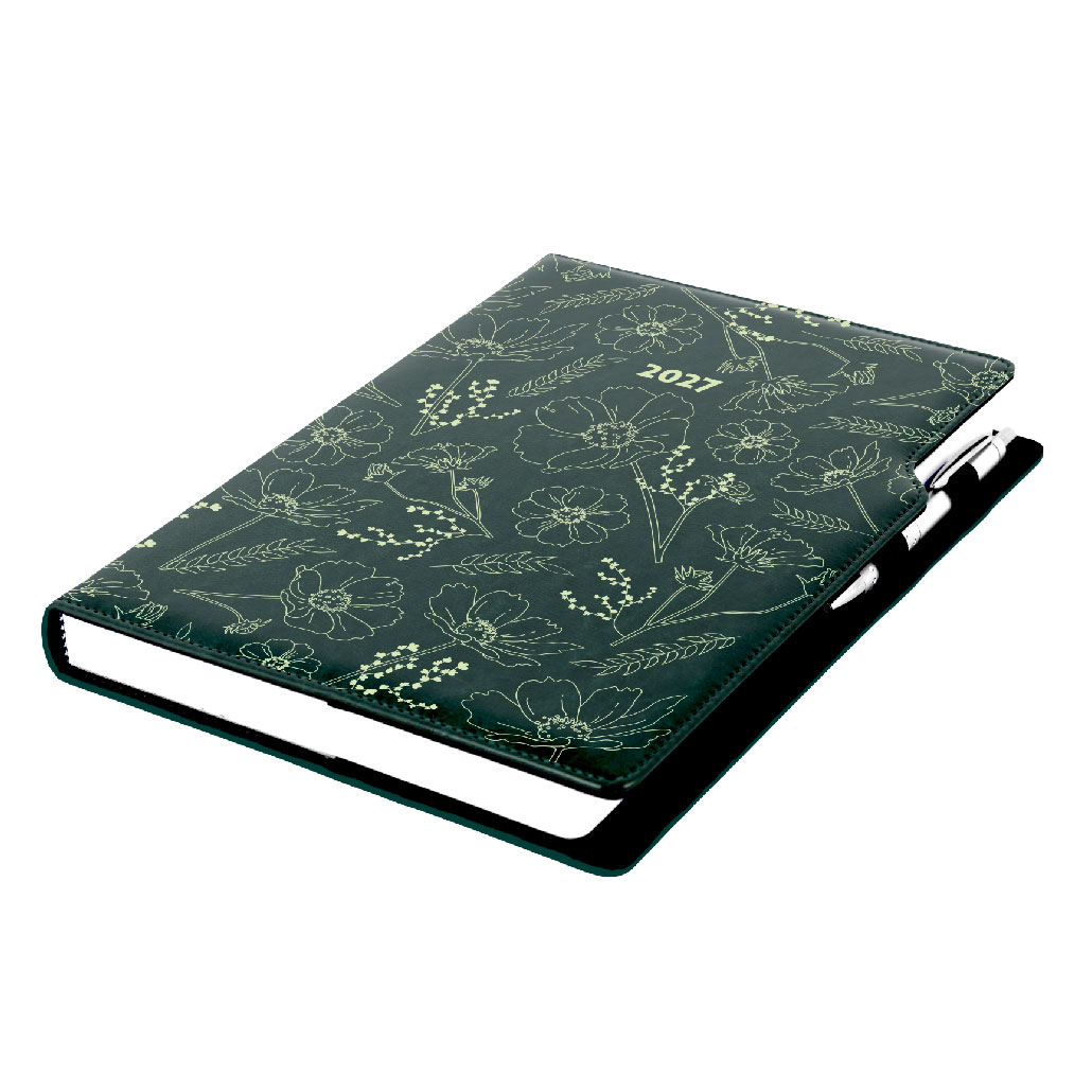 Diár DESIGN denný A4 2027 - zelená - Kvety