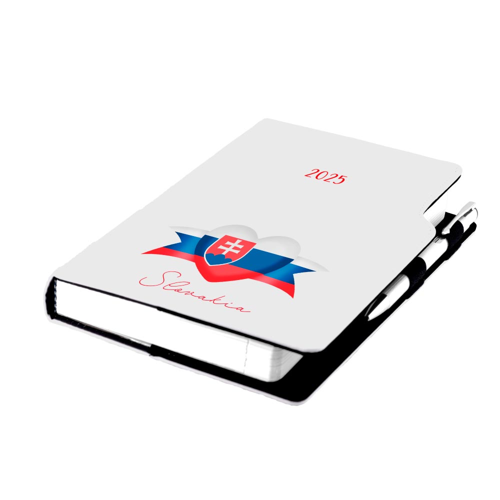 Diár DESIGN denný A5 2025 poľský - biela - Slovensko - vlajka
