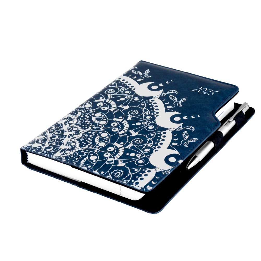 Diár DESIGN denný A5 2025 poľský - modrý - ornament