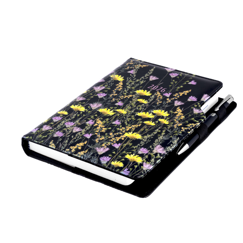 Diár DESIGN denný A5 2026 český - čierna - lúka