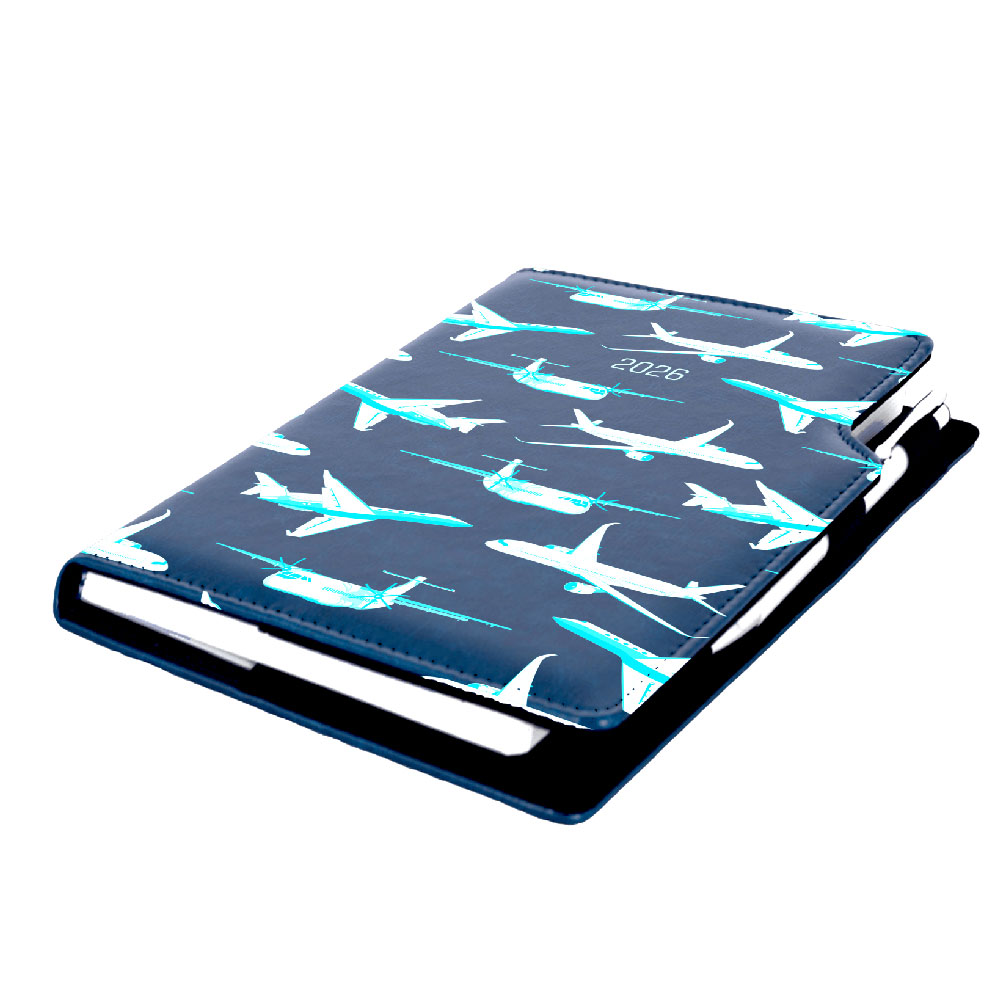 Diár DESIGN denný A5 2026 český - modrá - lietadlá
