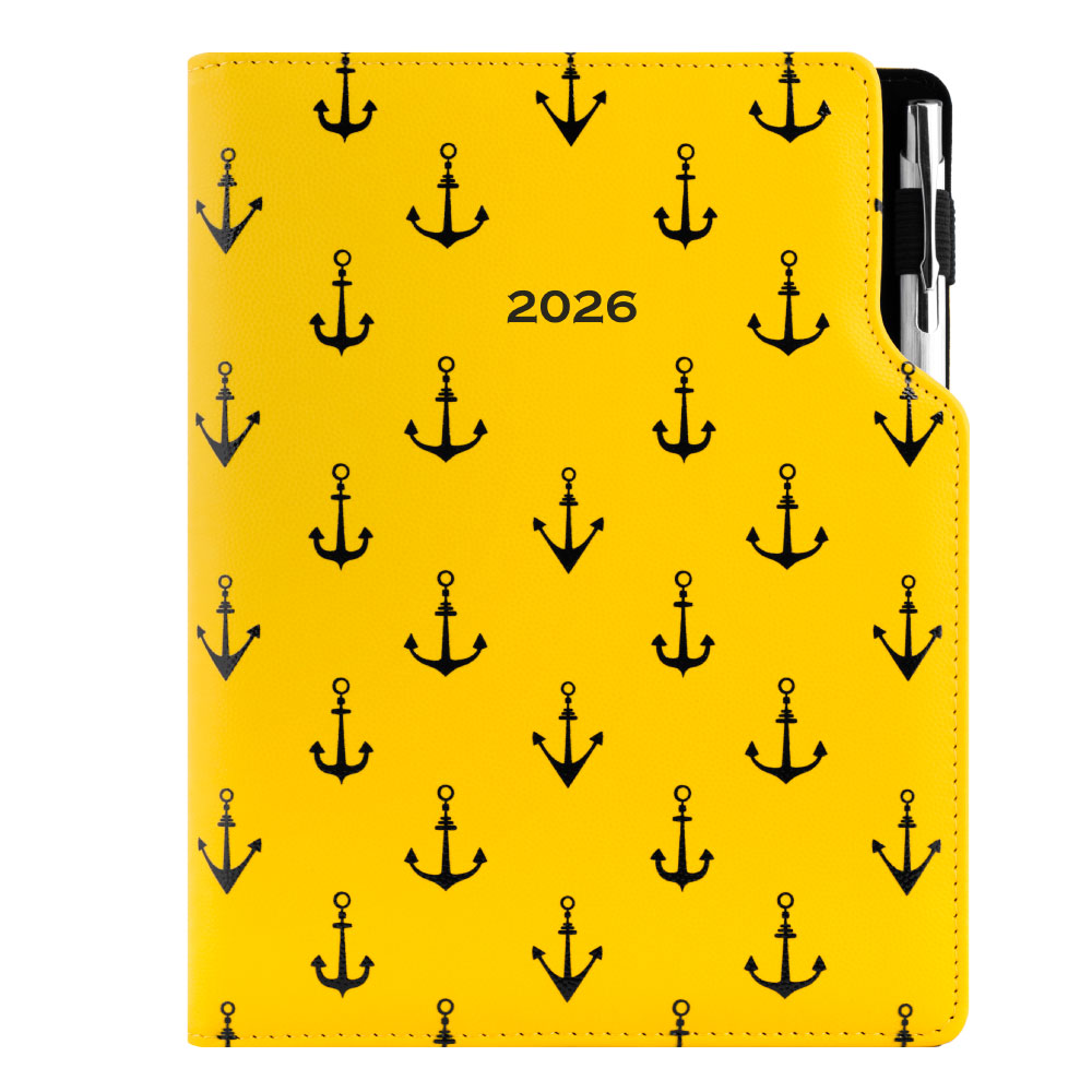 Diár DESIGN denný A5 2026 český - žltá - námorník - kotvy