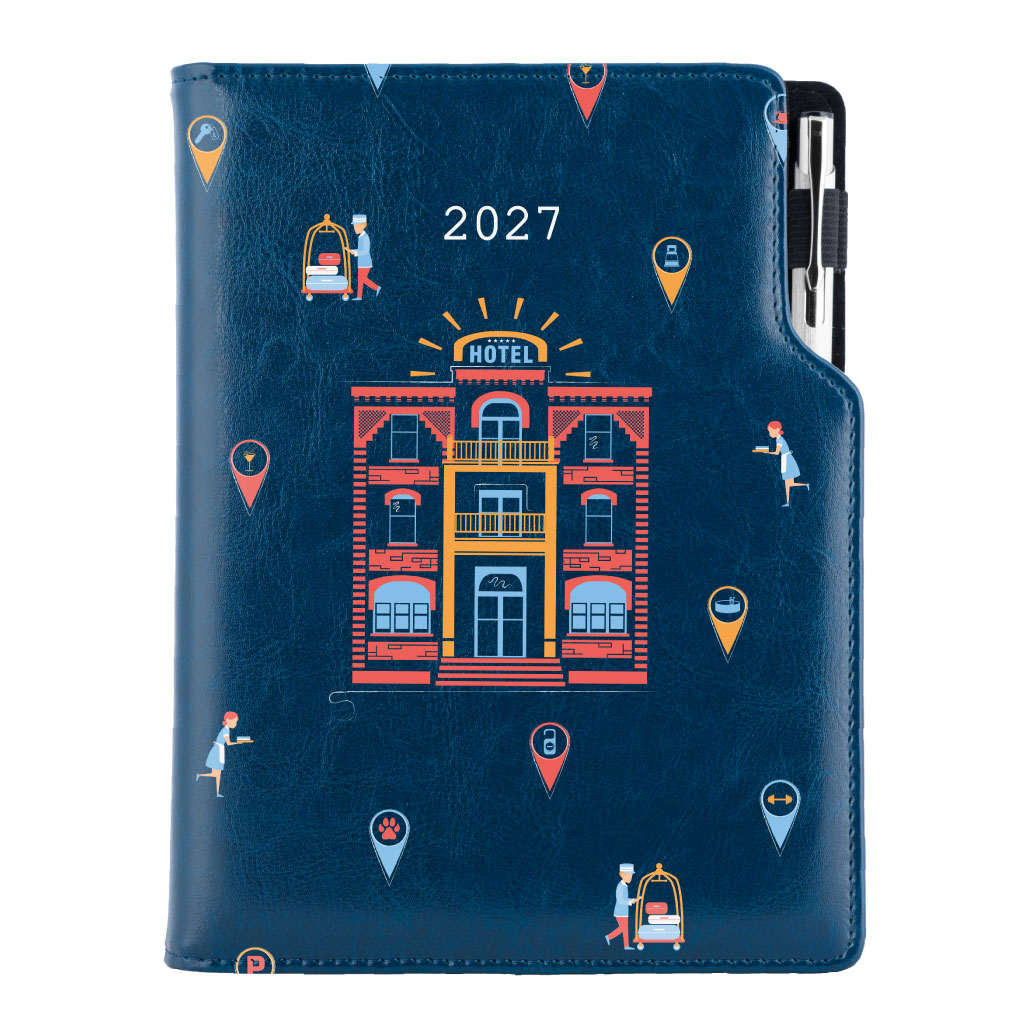 Diár DESIGN denný A5 2027 český - modrá - Hotel