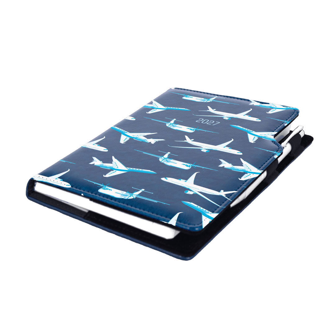 Diár DESIGN denný A5 2027 český - modrá - lietadlá