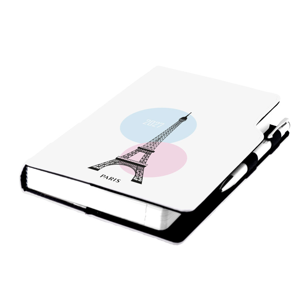 Diár obsahuje: okrúhle odtrhávacie rožky, bielu záložku a pero