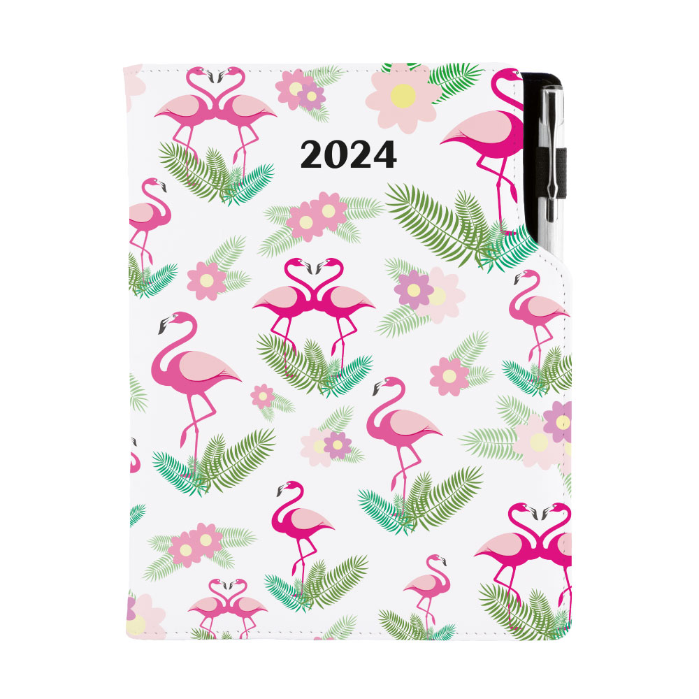 Diár obsahuje: okrúhle odtrhávcie rožky, bielu záložku a pero