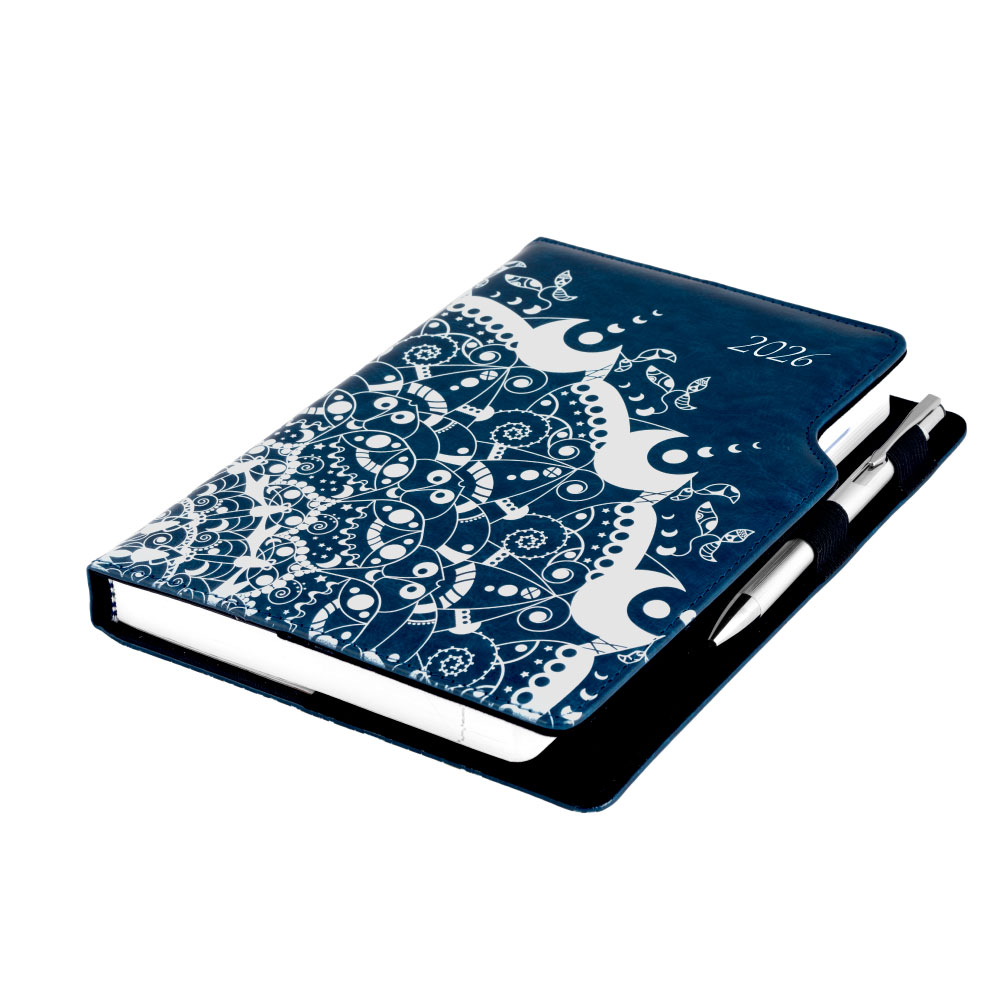 Diár DESIGN denný B6 2026 poľský - modrý - ornament