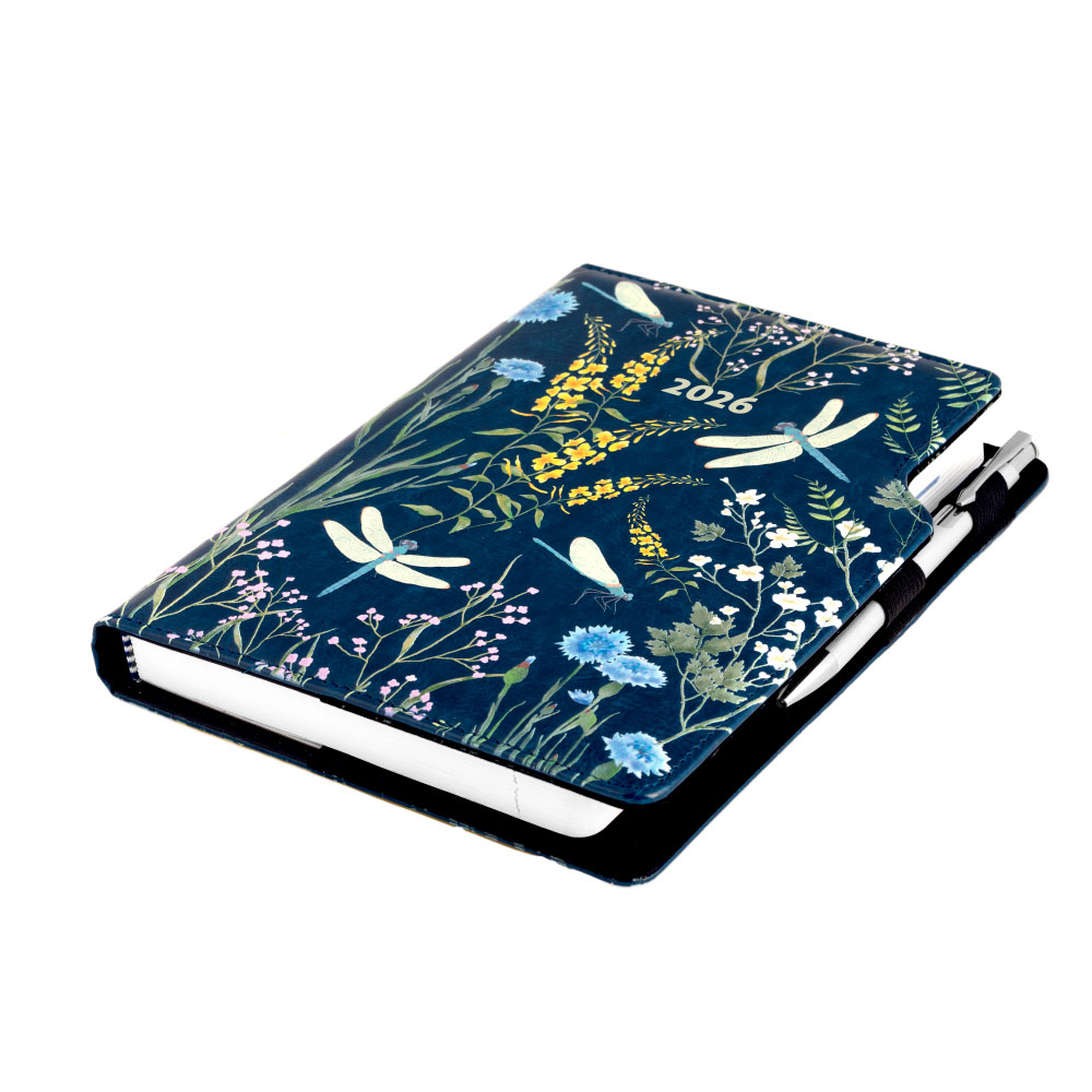Diár DESIGN denný B6 2026 poľský - modrý - vážky