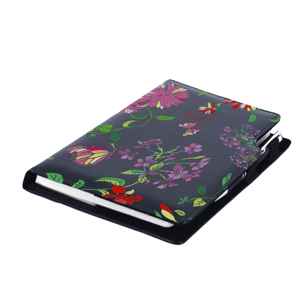 Diár DESIGN denný B6 2027 - čierna - Kvety