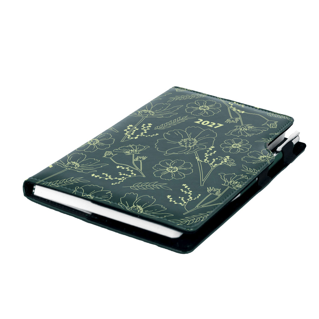 Diár DESIGN denný B6 2027 poľský - zelená - kvety