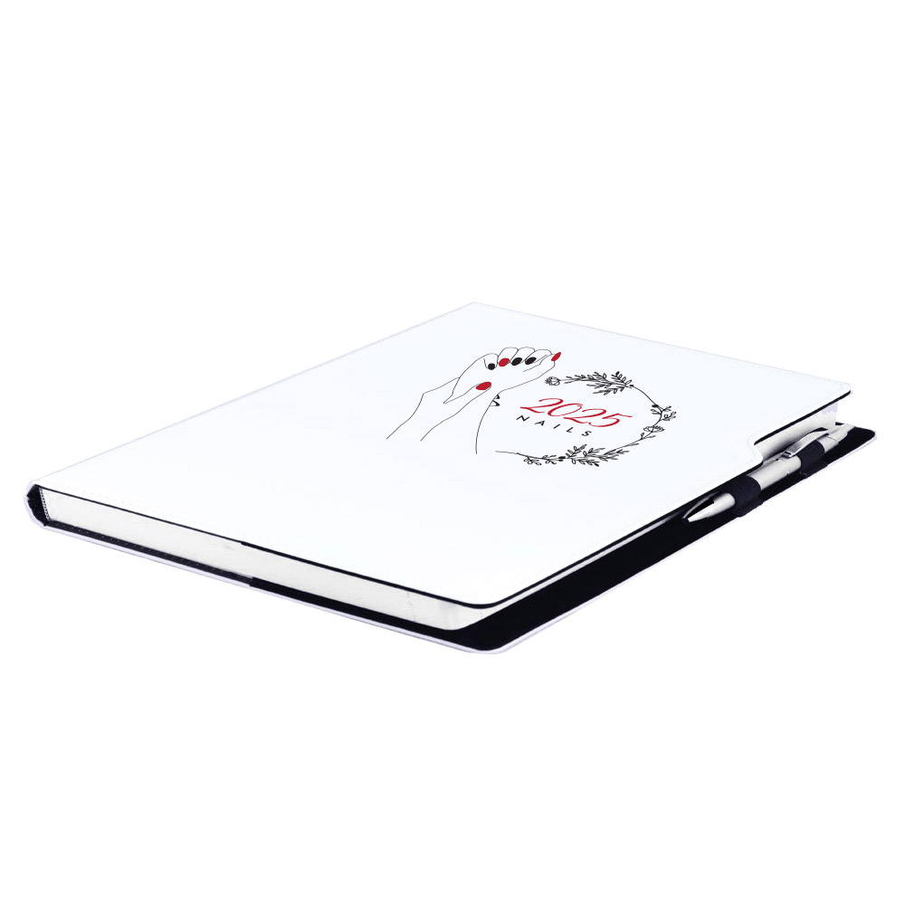 Diár obsahuje: okrúhle odtrhávcie rožky, bielu záložku a pero