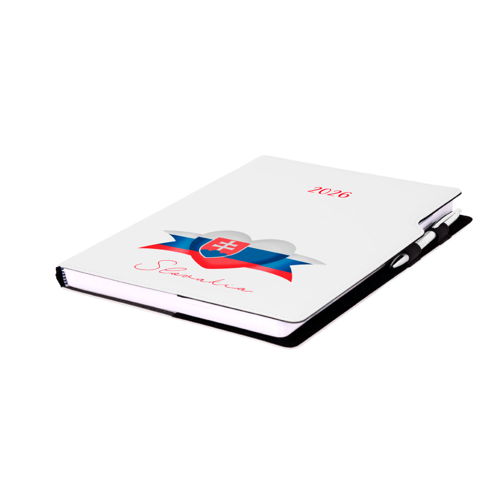 Diár DESIGN týždenný A4 2026 - biela - Slovensko - vlajka