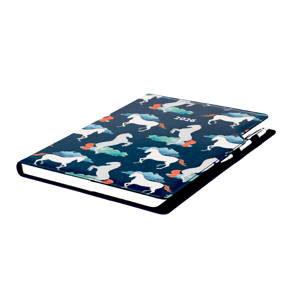 Diár DESIGN týždenný A4 2026 - modrá - kone