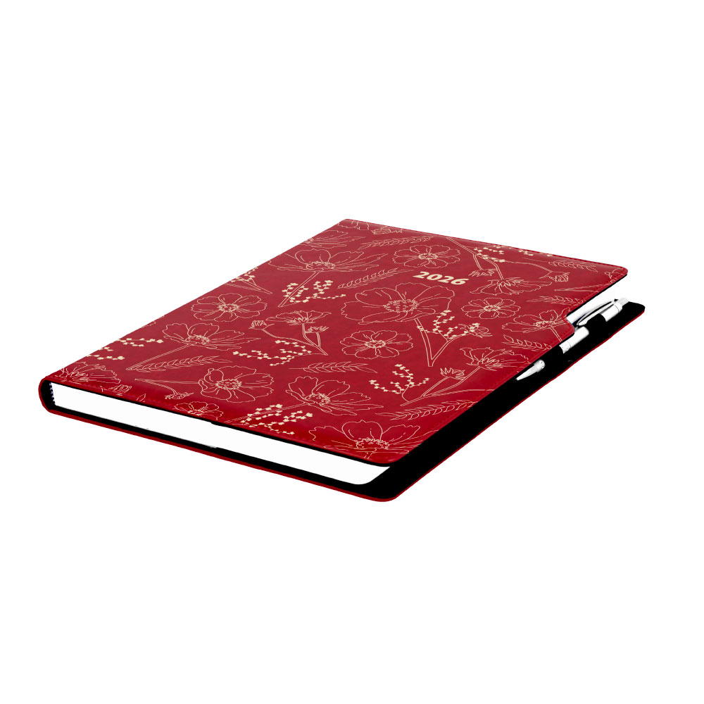 Diár DESIGN týždenný A4 2026 poľský - bordová - kvety