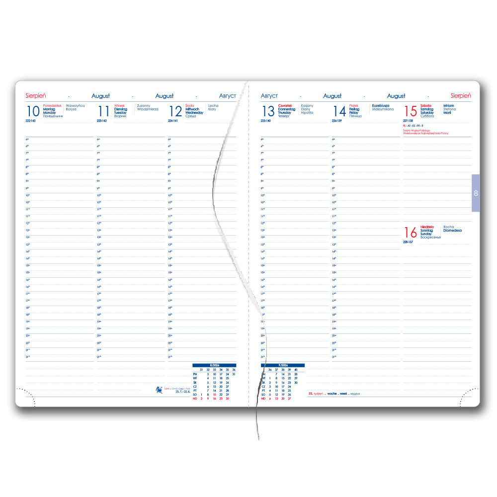 Diár obsahuje: okrúhle odtrhávacie rožky, bielu záložku a