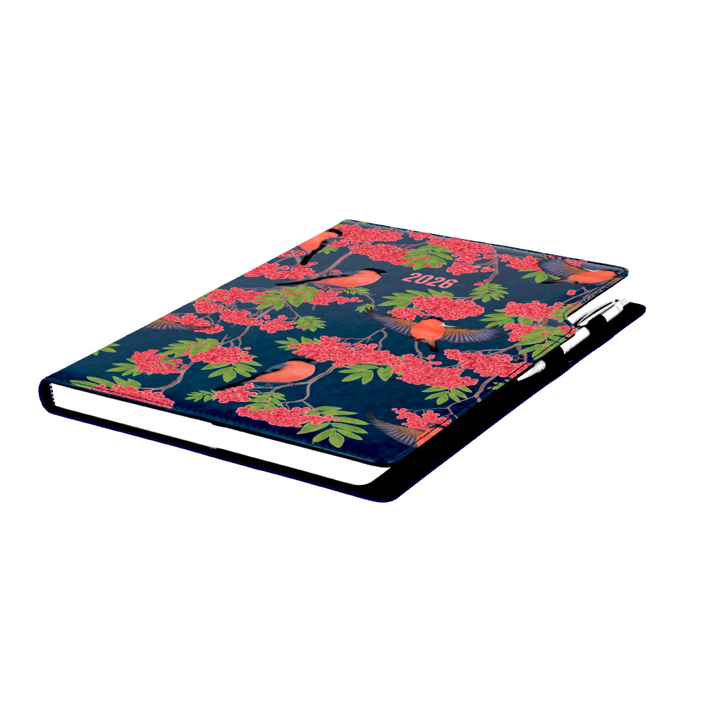 Diár obsahuje: okrúhle odtrhávacie rožky, bielu záložku a pero