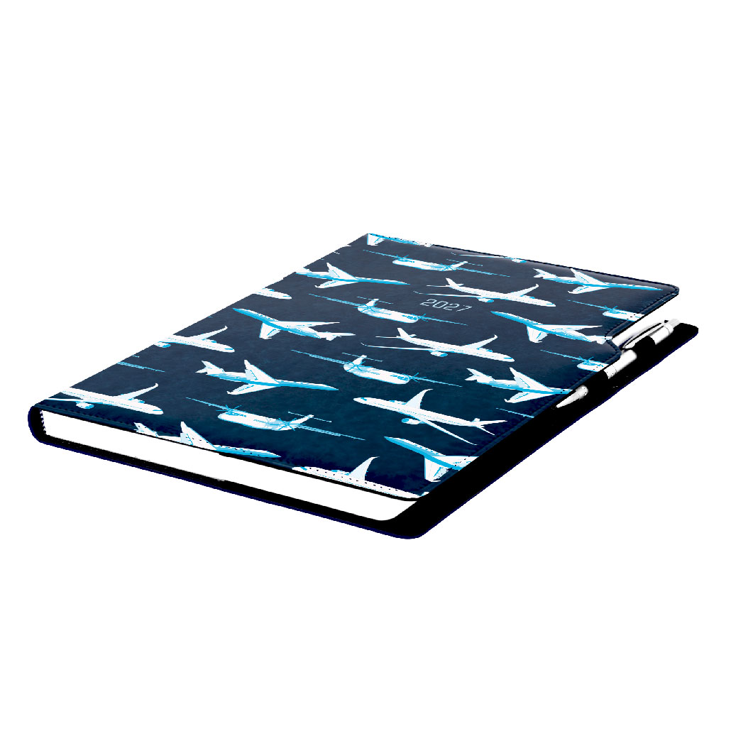 Diár DESIGN týždenný A4 2027 český - modrá - lietadlá
