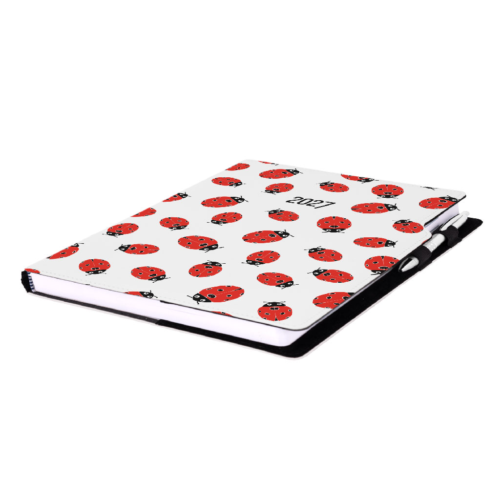 Diár obsahuje: okrúhle odtrhávcie rožky, bielu záložku a pero