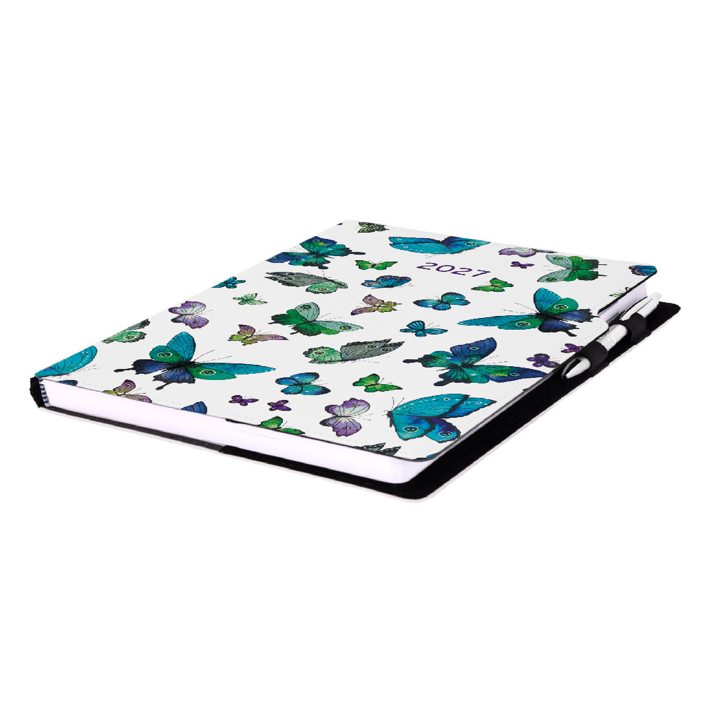 Diár DESIGN týždenný A4 2027 - Motýle modré