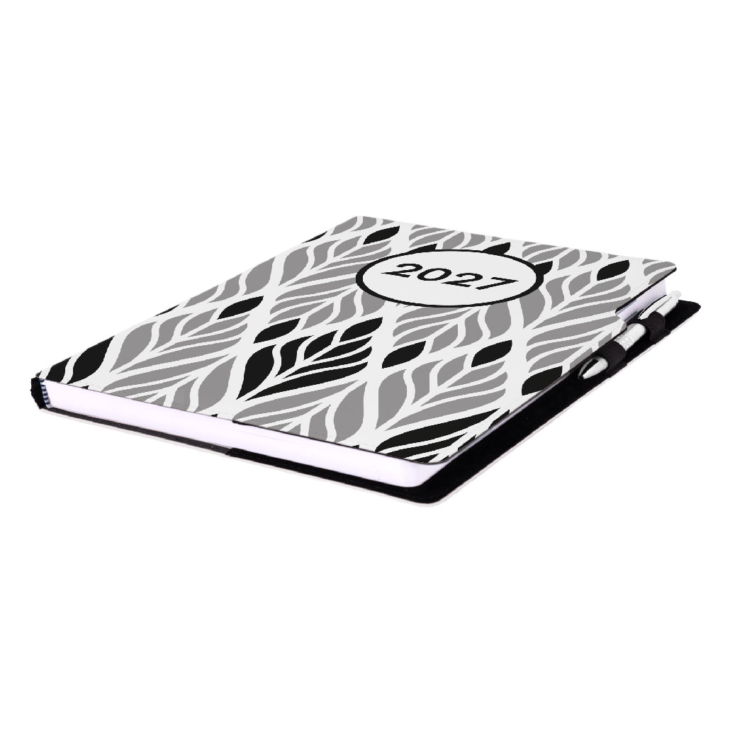 Diár obsahuje: okrúhle odtrhávcie rožky, bielu záložku a pero