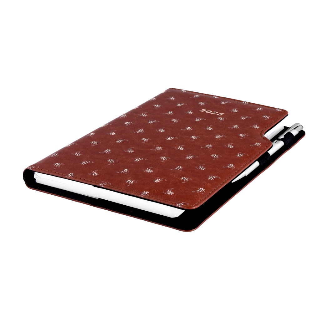Diár DESIGN týždenný A5 2025 poľský - hnedá - biely kvet