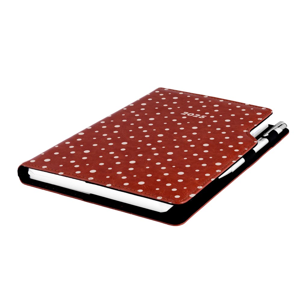 Diár DESIGN týždenný A5 2025 poľský - hnedá - bodky