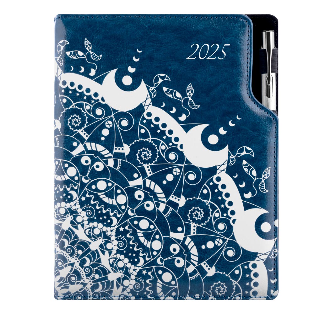 Diár DESIGN týždenný A5 2025 poľský - modrý - ornament