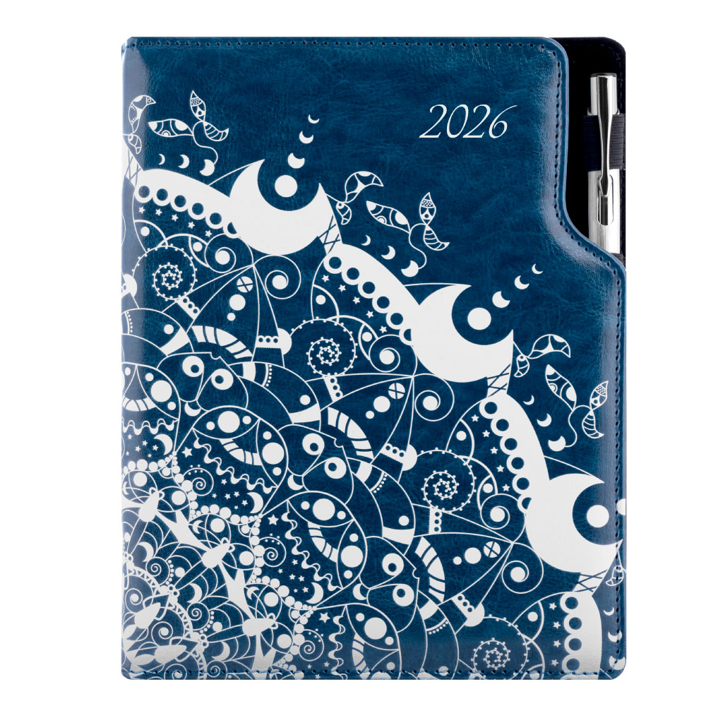 Diár DESIGN týždenný A5 2026 - modrá - Ornament