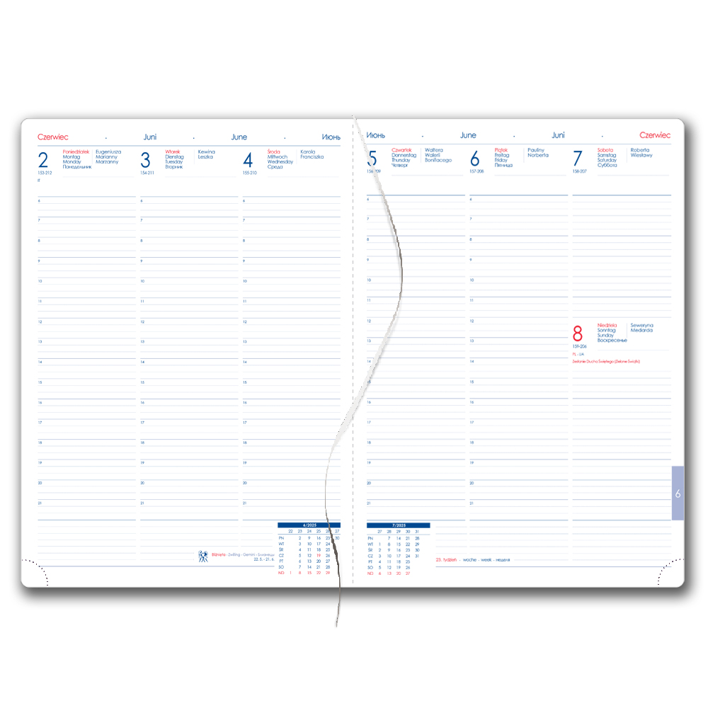 Diár obsahuje: okrúhle odtrhávacie rožky, bielu záložku a