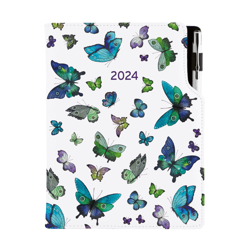 Diár DESIGN týždenný B5 2024 - Motýle modré