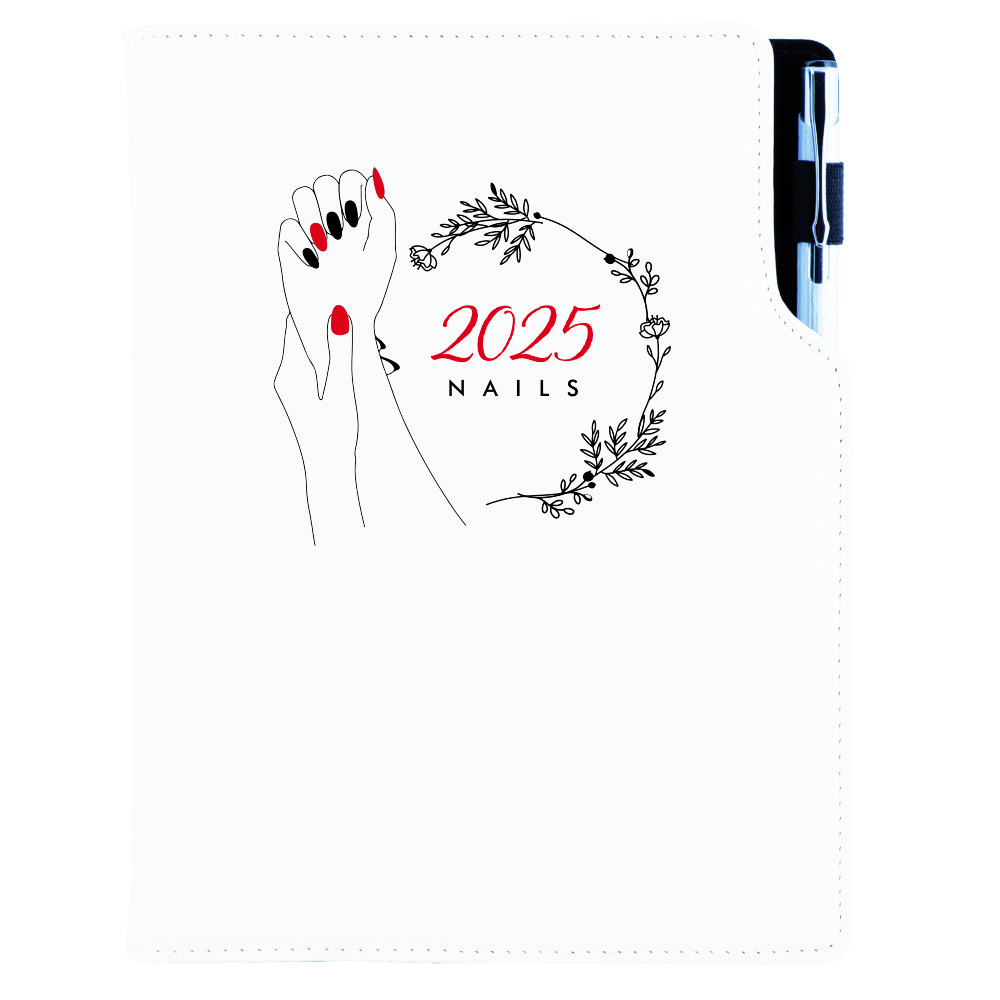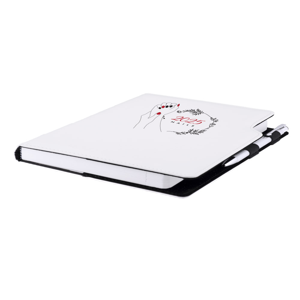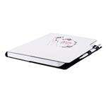 Diár obsahuje: okrúhle odtrhávcie rožky, bielu záložku a pero