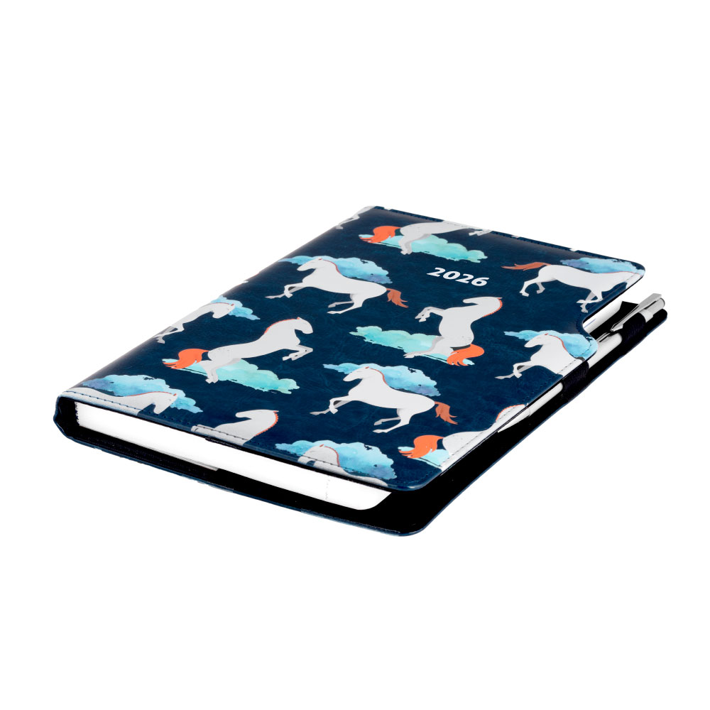 Diár DESIGN týždenný B5 2026 poľský - modrý - kone