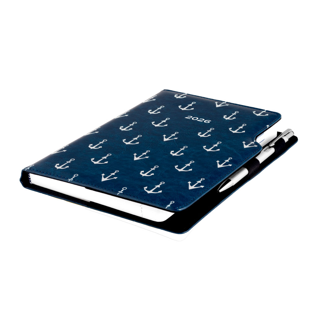 Diár DESIGN týždenný B5 2026 poľský - modrý - námorník - kotvy
