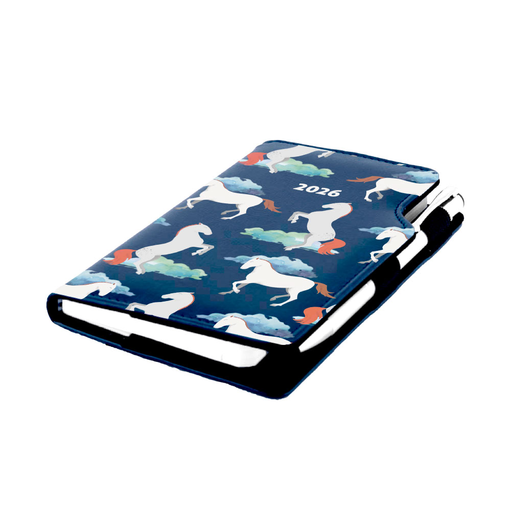 Diár DESIGN týždenný vreckový 2026 poľský - modrý - kone