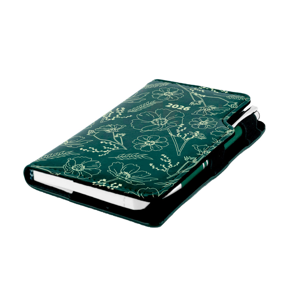 Diár DESIGN týždenný vreckový 2026 poľský - zelená - kvety