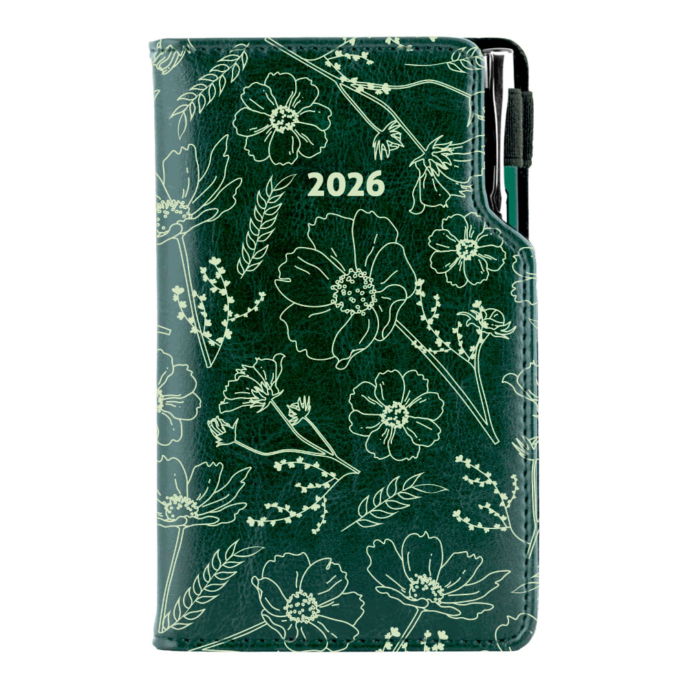 Diár DESIGN týždenný vreckový 2026 slovenský - zelená - kvety