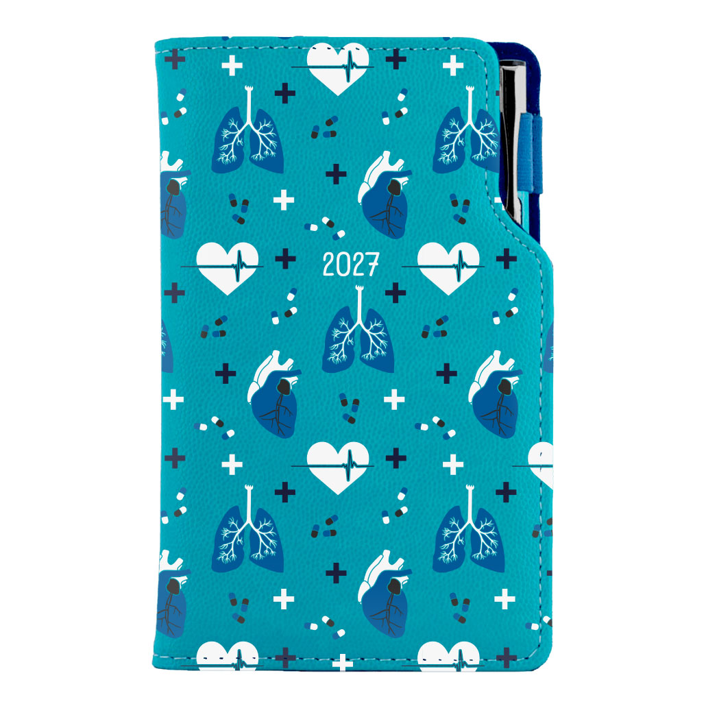 Diár DESIGN týždenný vreckový 2027 polský - tyrkysová- Doktor - srdce