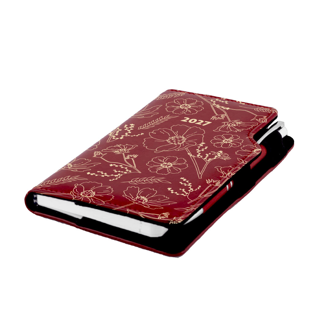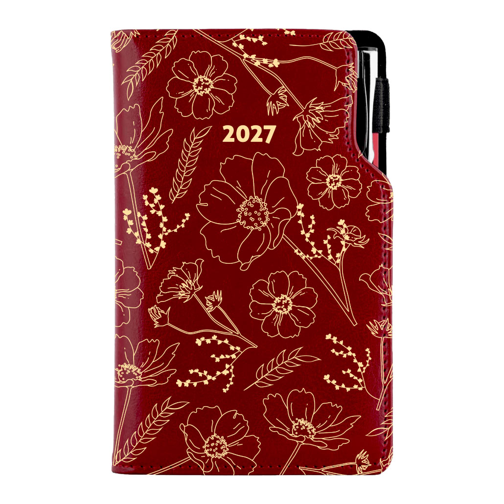 Diár DESIGN týždenný vreckový 2027 slovenský - bordová - Kvety