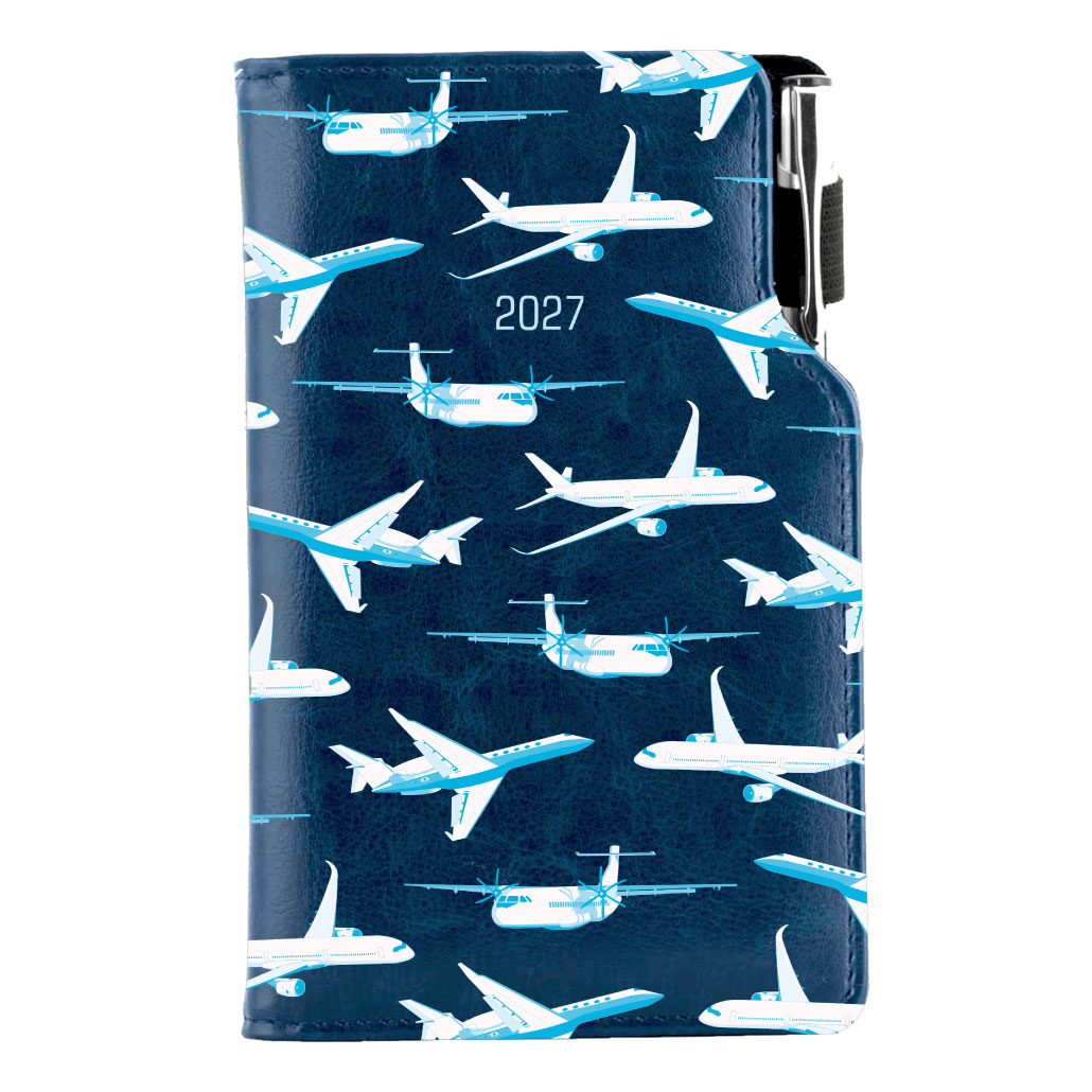 Diár DESIGN týždenný vreckový 2027 slovenský - modrá - lietadlá