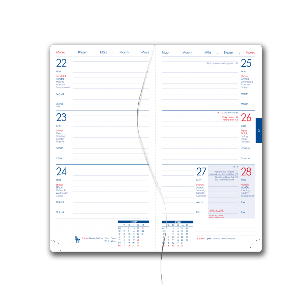 Diár DESIGN týždenný vreckový 2027 slovenský - modrá - Papagáj